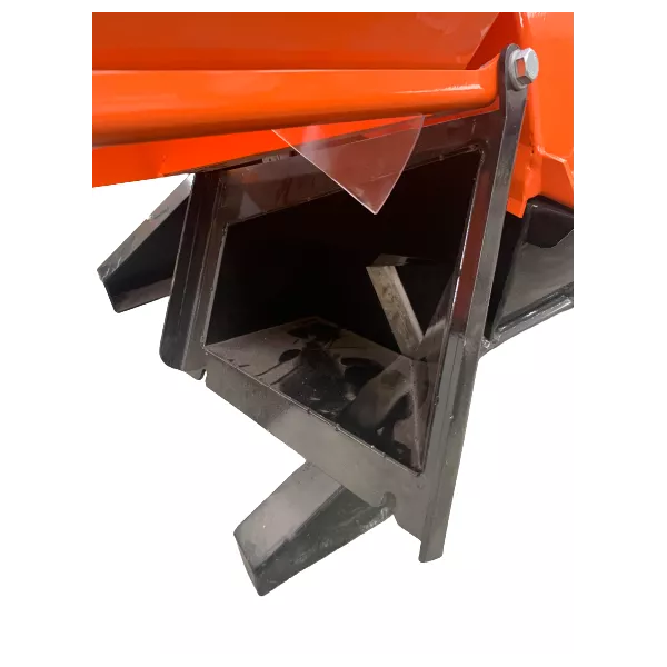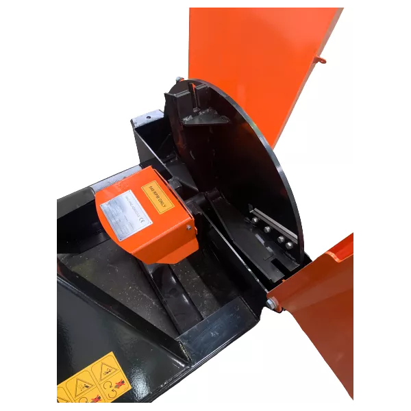 | Rotor à inertie 42kg Ø 625 mm équipé de 4 couteaux réversibles et de 1 contre couteaux pour le réglage du calibre du copeau.Demi-carter facilement démontable pour le remplacement des couteaux dans le temps ou pour un éventuel débourrage.Goulotte dévacuation orientable à 360 Casquette déjection réglable en hauteur Large trémie convoyeur de 500x500 mmExtension de protectionHauteur de la trémie | 1100mmHauteur de la goulotte d'évacuation : 145cmLargeur à l'attelage : De 48 à 80cm ( les axes fournis sont mobiles )Hauteur à l'attelage : De 60 à 65cm ( deux positions possible )Rendement 7 à 8 m3/hPosition de travail et de rangementGraisseur intégré à chaque palier : OuiPlaque en caoutchouc anti retour dans la trémie afin d'éviter les projections inversesVitesse de rotation de la prise de force : 540 ou 1000 tours minuteAttache 3 points universel catégorie 1 ou 2 Broie jusqu'à 100mm de diamètrePoids : 195 KgTransmission avec sécurité livrée avec le broyeur |