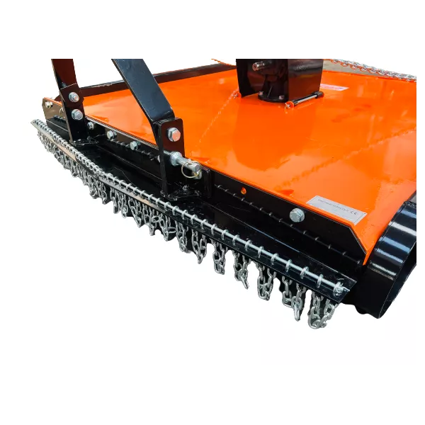 | Hauteur de coupe | 30 à 110mm- Attelage en catégorie 2 standard ( Ø25-28mm )- Rangée de chaînes à l'avant et à l'arrière pour éviter les projections |