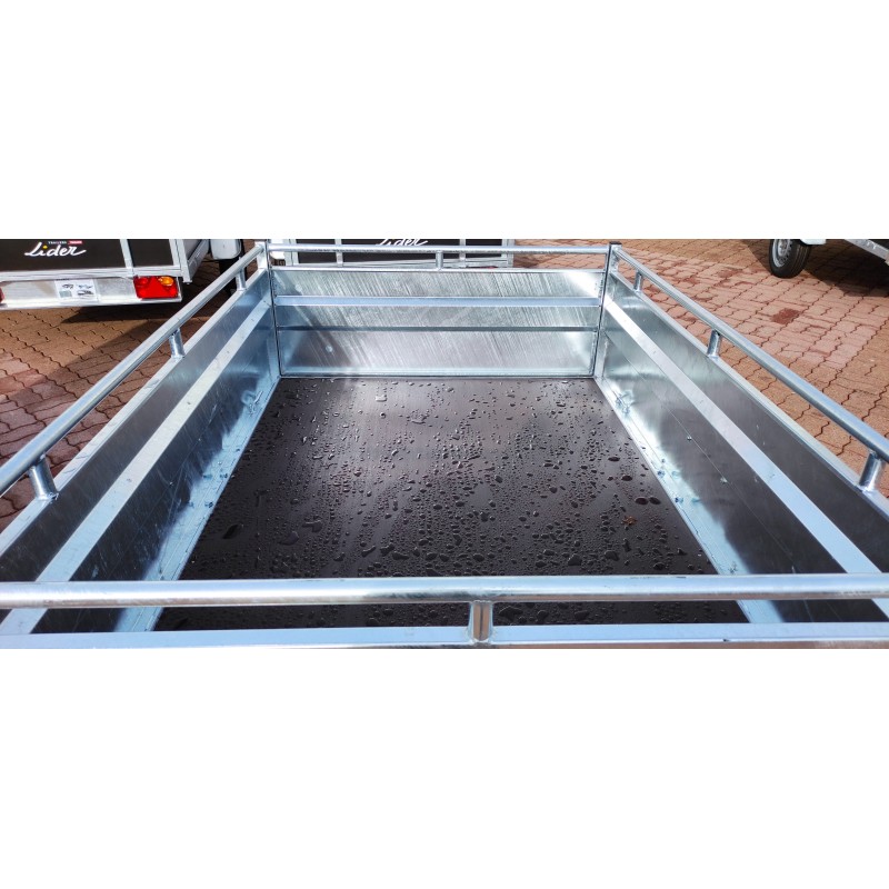 La remorque Robust 42350 de la marque Lider est conçue pour un usage intensif, adaptée aussi bien aux particuliers qu’aux professionnels. Dotée de 4 boucles d’arrimage intérieures, d’un plancher en bois contreplaqué marine antidérapant, et d’un châssis entièrement mécano-soudé galvanisé à chaud, elle offre une grande robustesse. Les portes avant et arrière sont entièrement démontables, en tôle électro-zinguée, et les ridelles ont une hauteur de 50 cm. L’essieu de suspension à barres de torsion en caoutchouc, le corps galvanisé à chaud, et la flèche soudée en profil en U avec traverses de renfort assurent une grande stabilité. Les feux verticaux encastrés sont protégés, et la remorque est basculante pour faciliter le chargement. Des options telles que la bâche plate, la bâche haute avec armature, les réhausses grillagées, ou la porte pont avec béquilles arrières sont disponibles. Pour tracter cette remorque non-freinée avec un PTAC supérieur à 500 kg, le poids à vide du véhicule tracteur doit être au moins deux fois supérieur au PTAC de la remorque.
