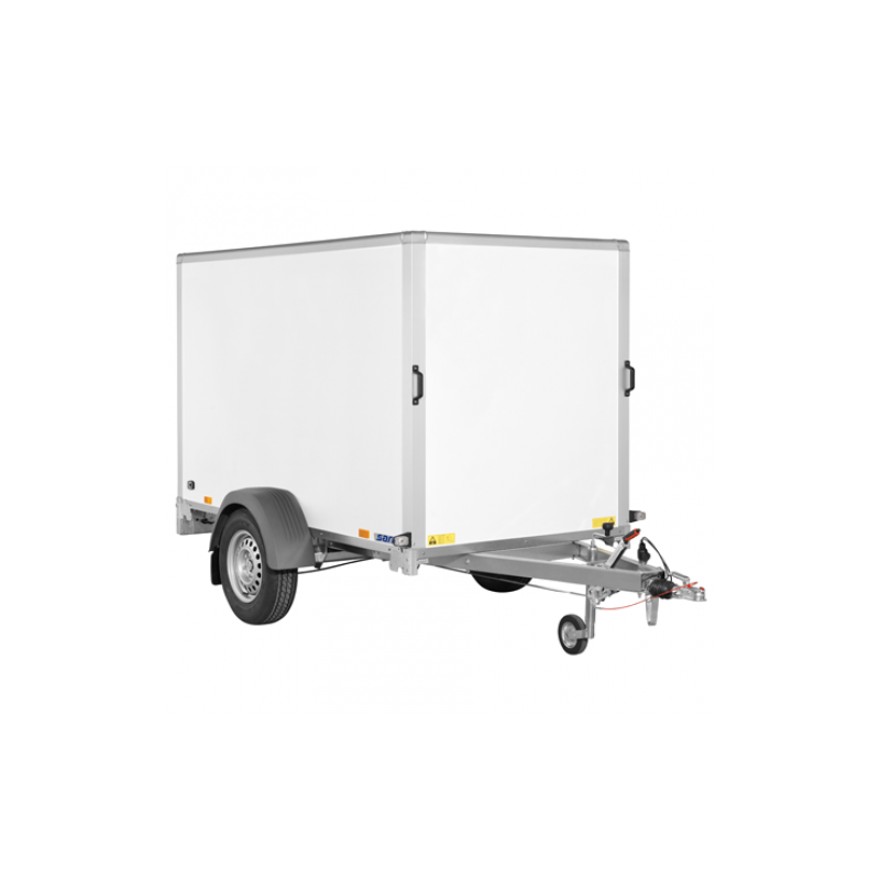 La remorque fourgon Saris DV135 est un produit de qualité avec un essieu de 1350kg et un châssis mécano soudé. Les panneaux en bois avec revêtement synthétique offrent une grande durabilité, tandis que le plancher antidérapant résistant à l’usure assure une utilisation sûre. Les portes arrières en 2 vantaux avec taquets antivol, les charnières et serrures en aluminium et inox, ainsi que l’éclairage intérieur de série, garantissent une manipulation facile et sécurisée. Chaque fourgon est équipé en série d’une double porte arrière, mais des options telles qu’une rampe d’accès avec des vérins ou une porte latérale sont également disponibles. Le Fourgon Saris est livré avec un livret d’instruction/d’entretien unique pour assurer un entretien facile et maintenir le fourgon en parfait état.